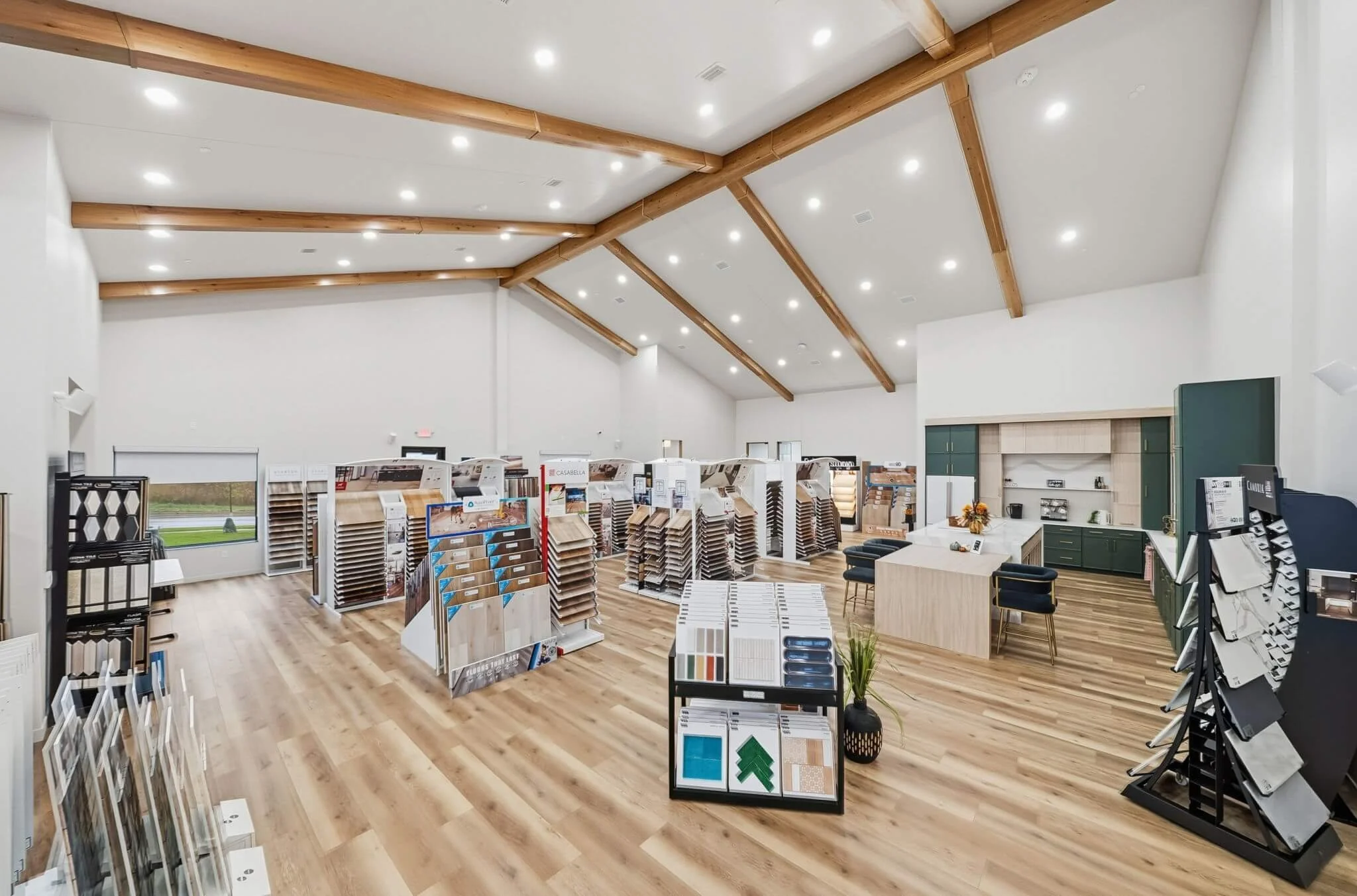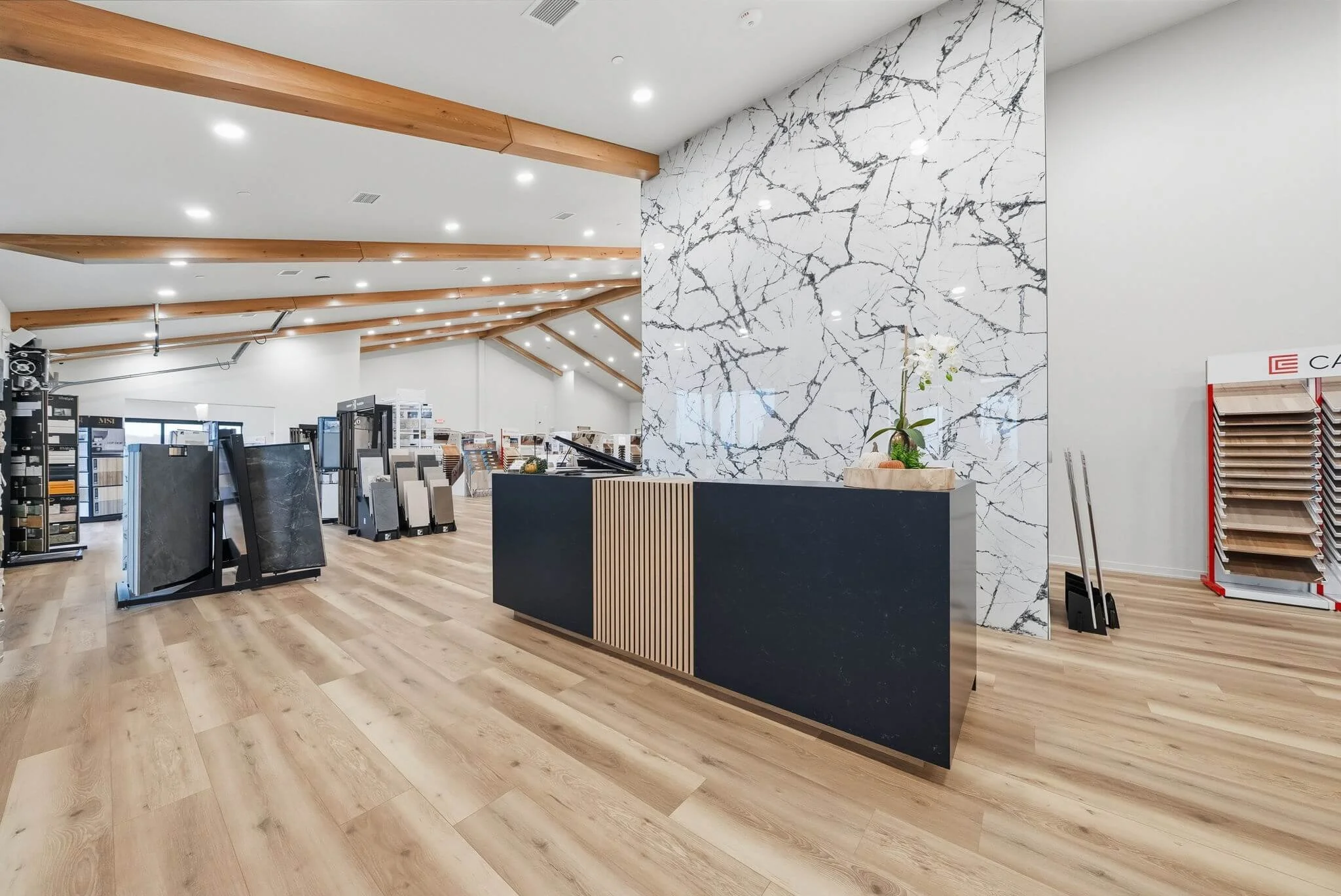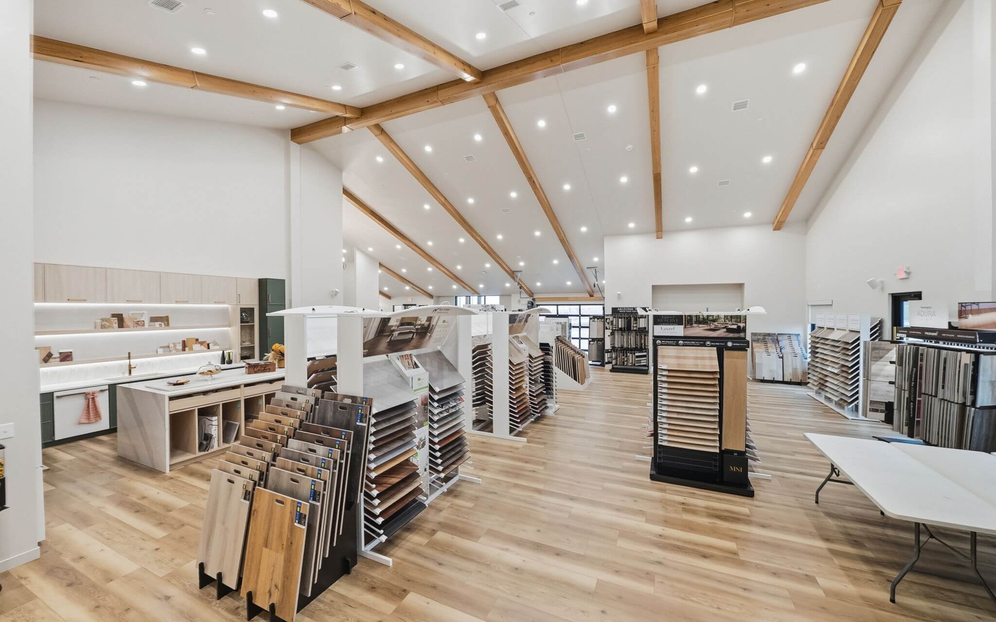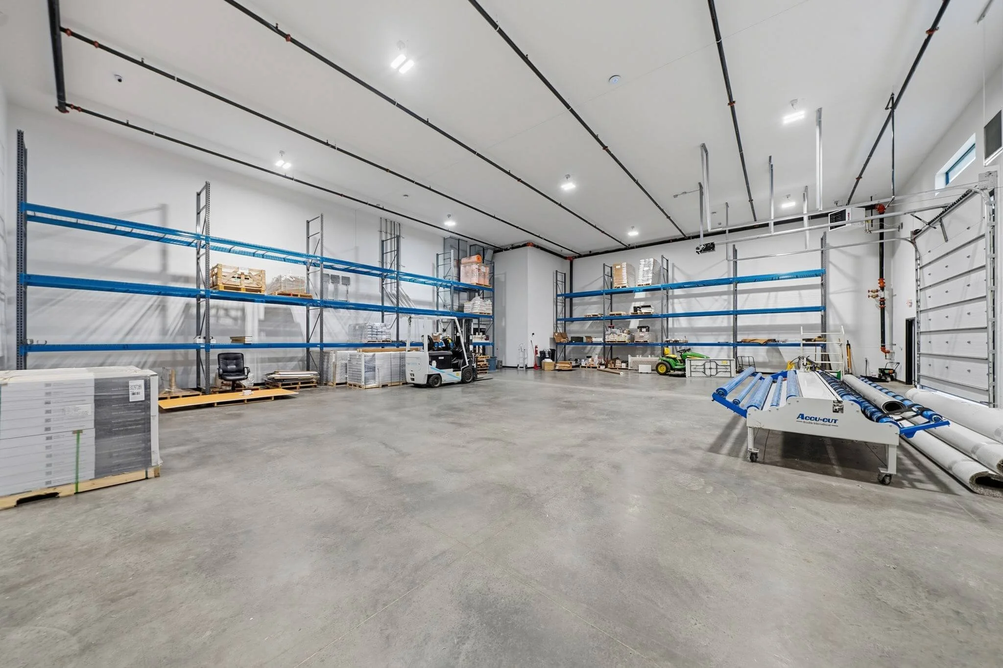 Large retail and design space that showcases a wide array of flooring products as well as cabinets, plumbing and lighting for residential and commercial projects. The building also has two separate office spaces for additional tenants and a large warehouse space.