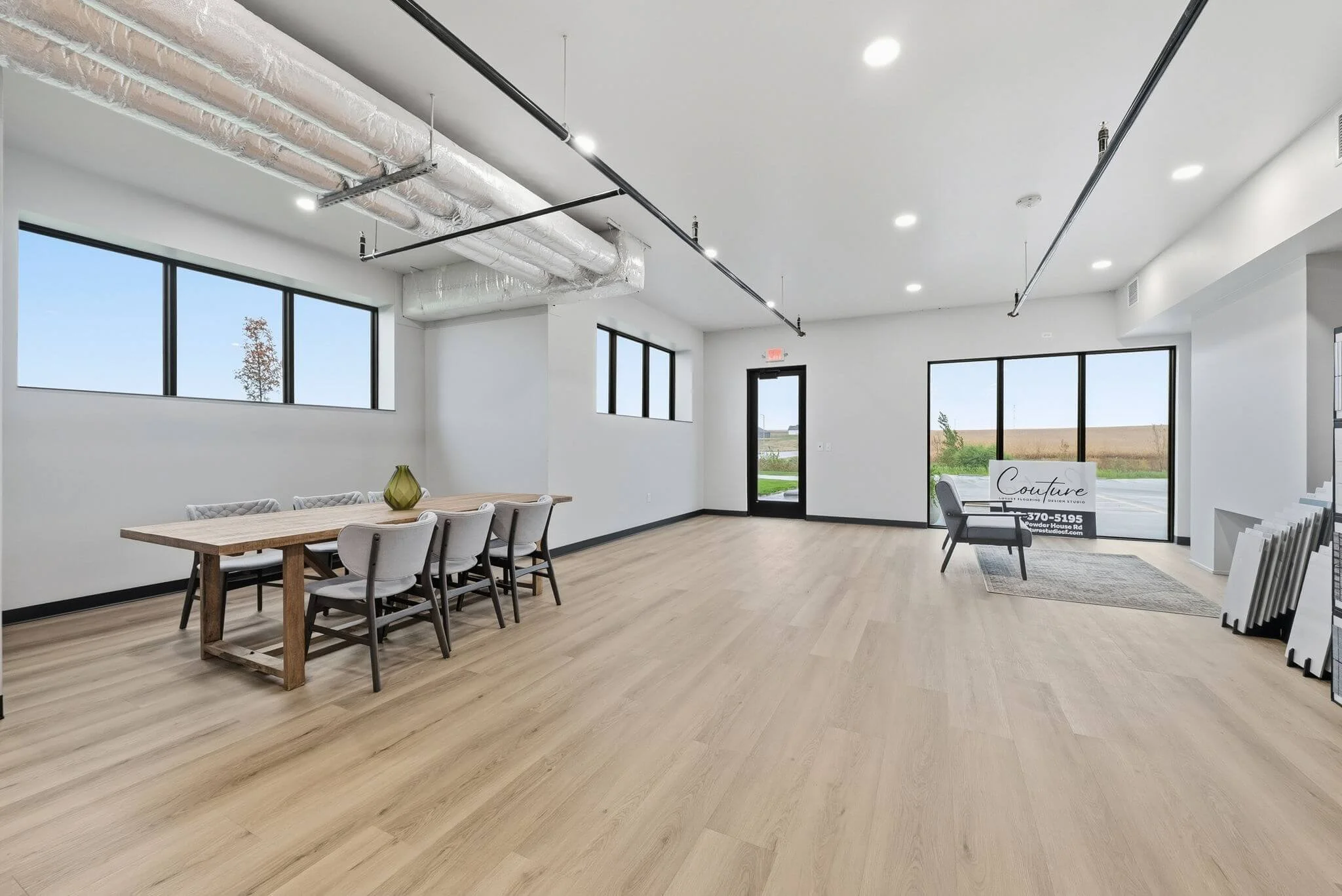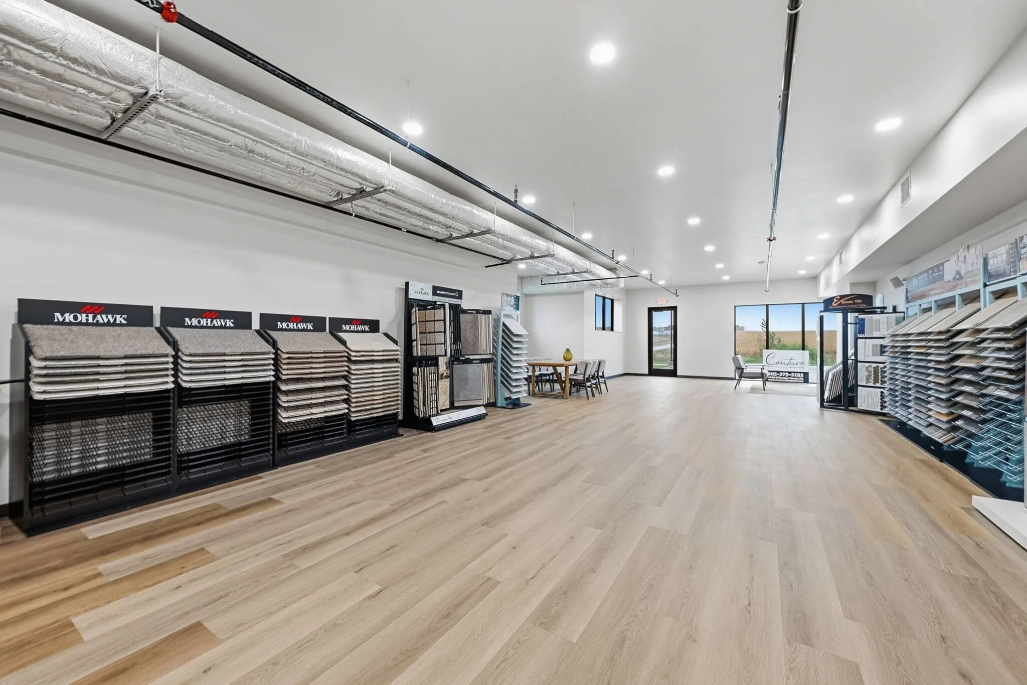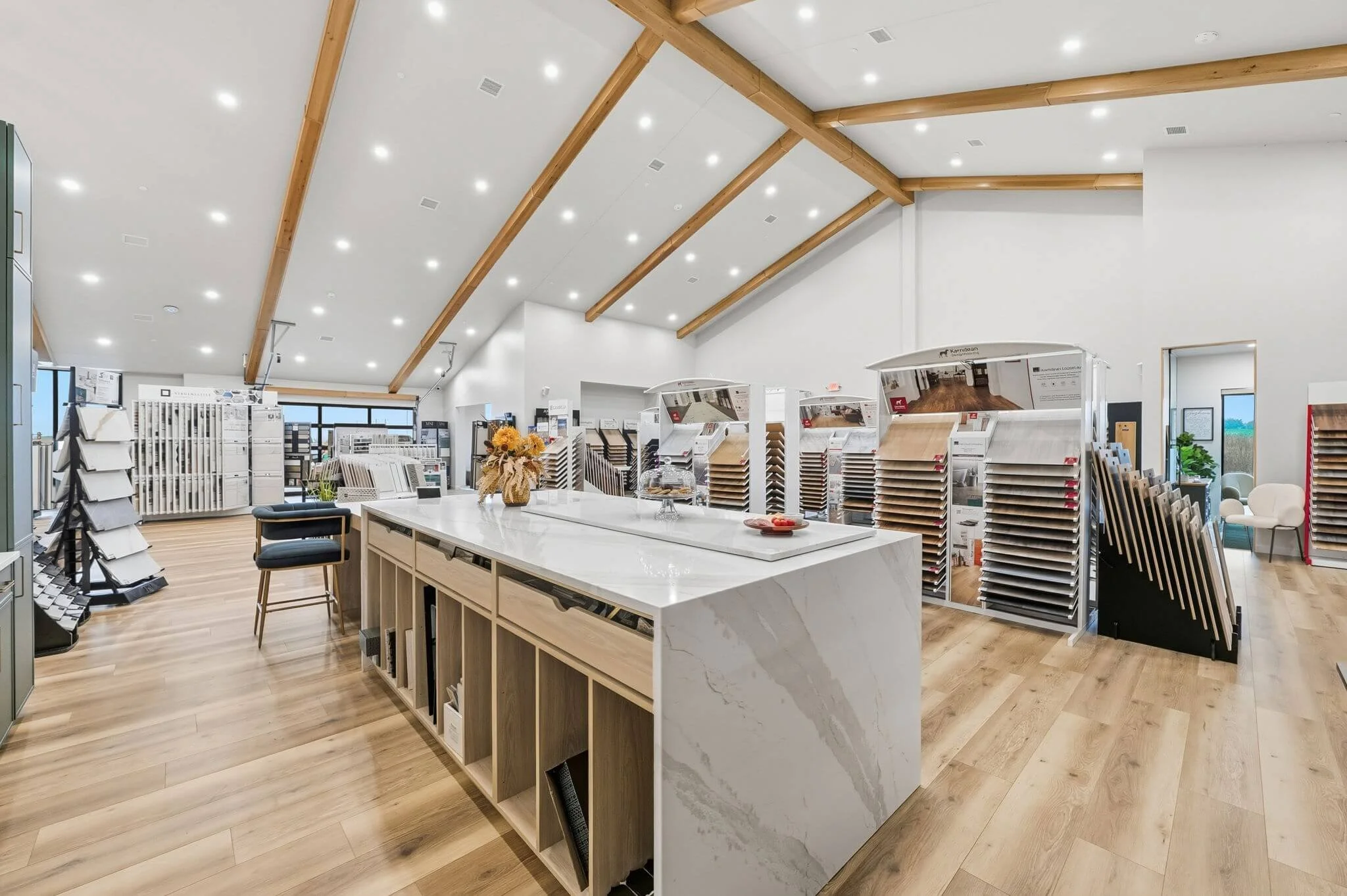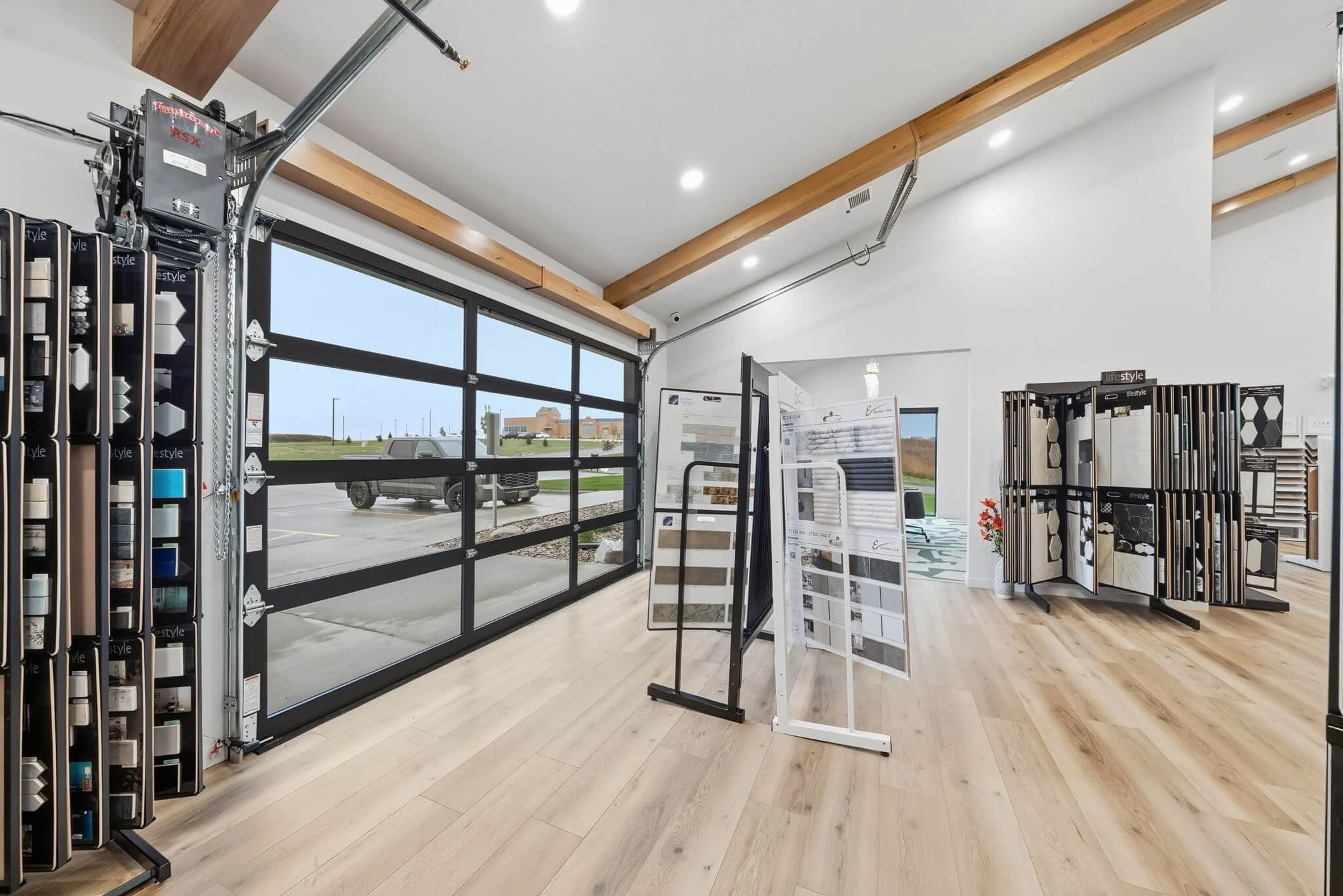 Large retail and design space that showcases a wide array of flooring products as well as cabinets, plumbing and lighting for residential and commercial projects. The building also has two separate office spaces for additional tenants and a large warehouse space.