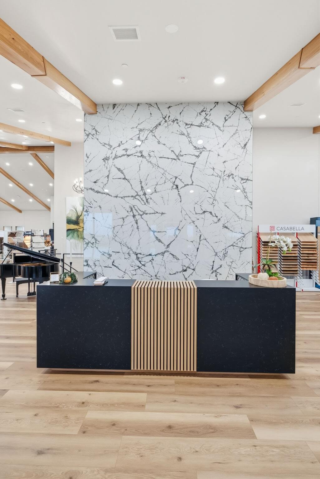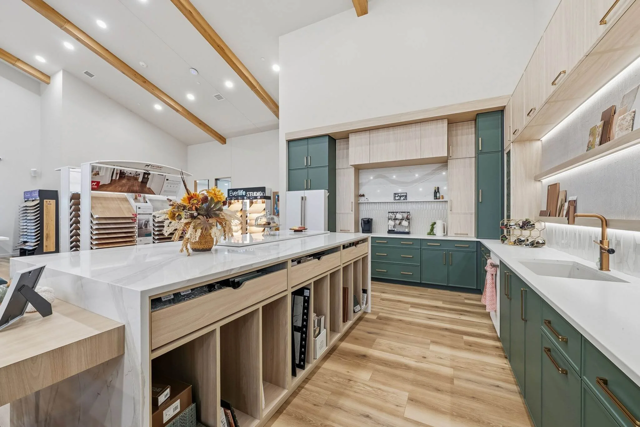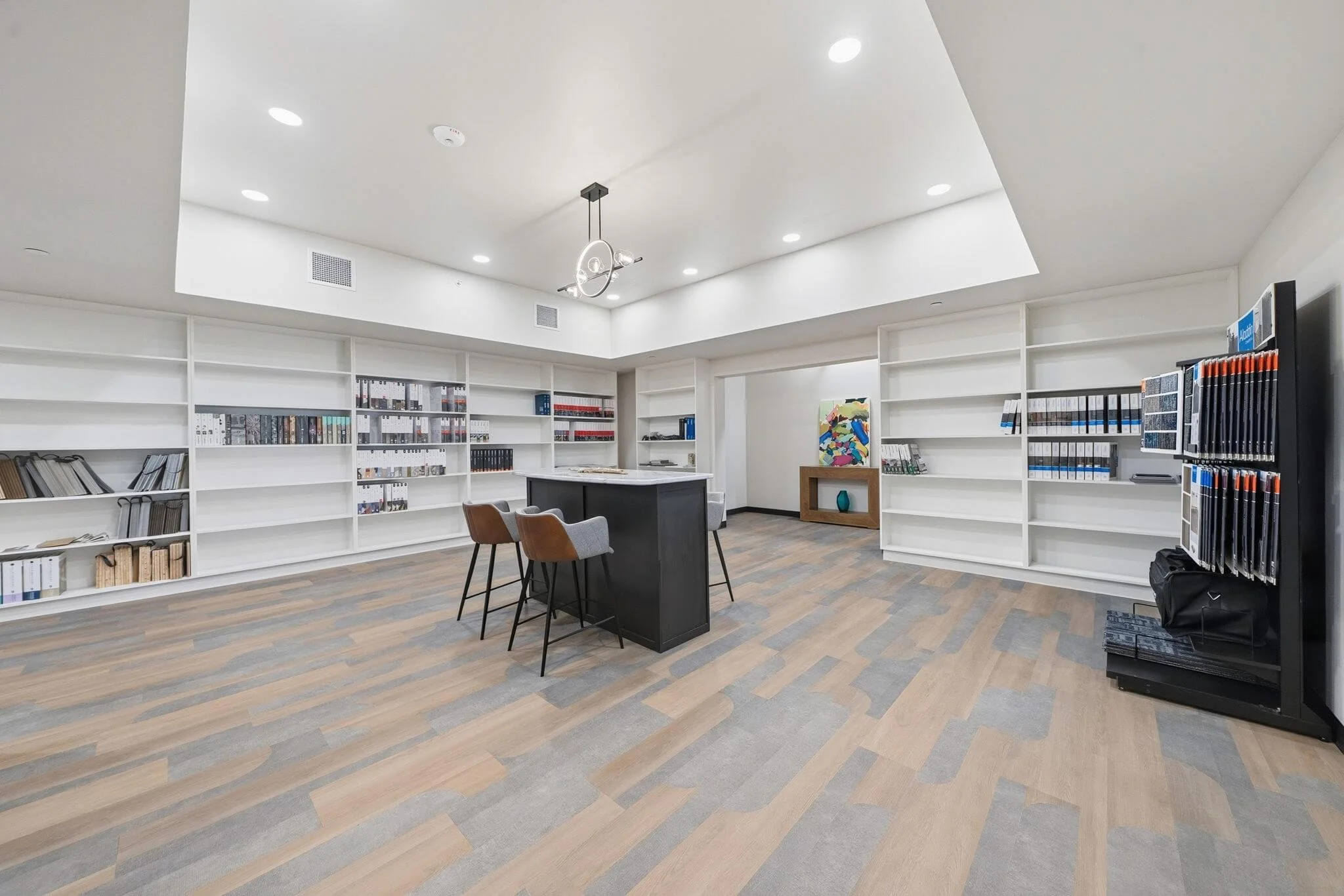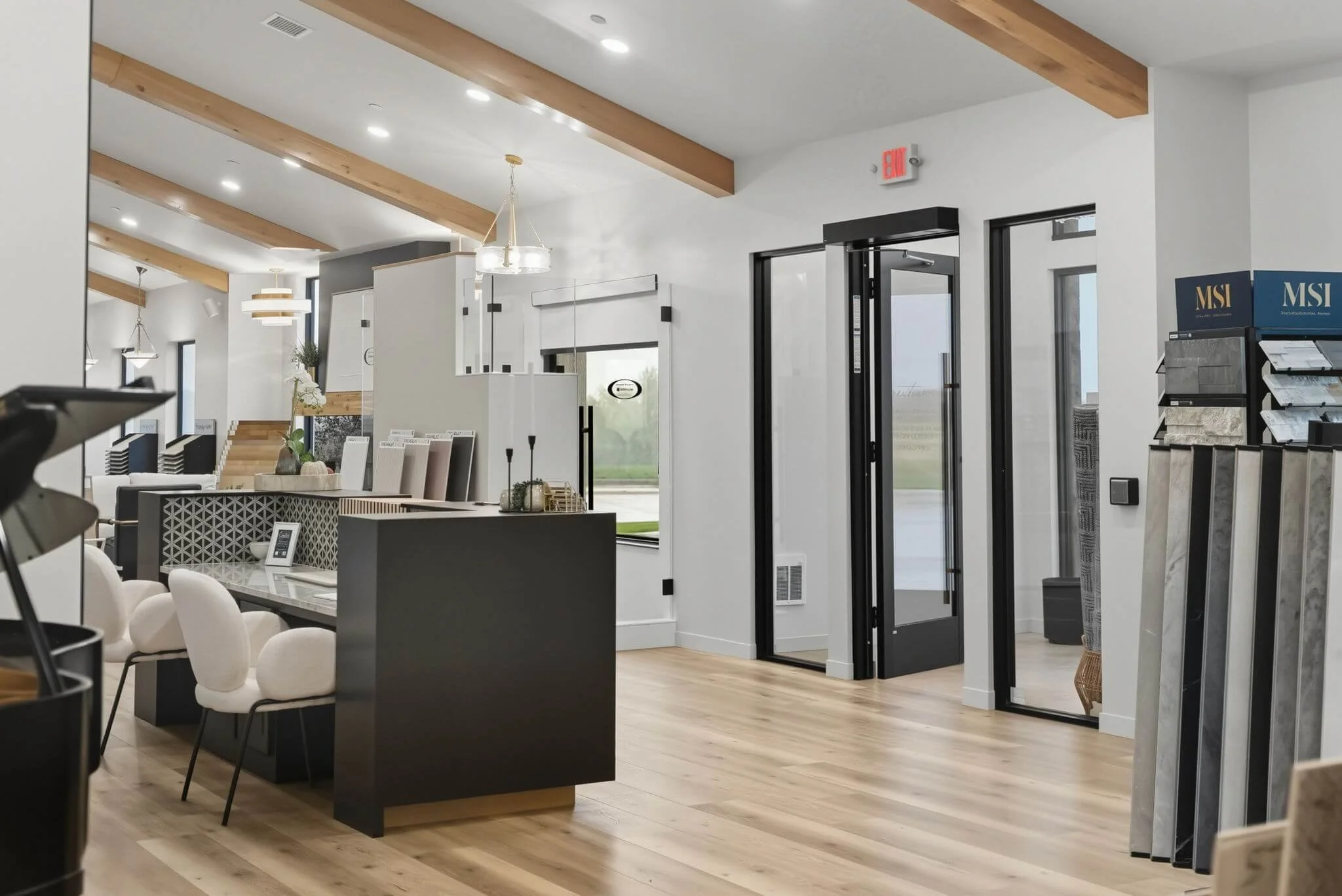 Large retail and design space that showcases a wide array of flooring products as well as cabinets, plumbing and lighting for residential and commercial projects. The building also has two separate office spaces for additional tenants and a large warehouse space.