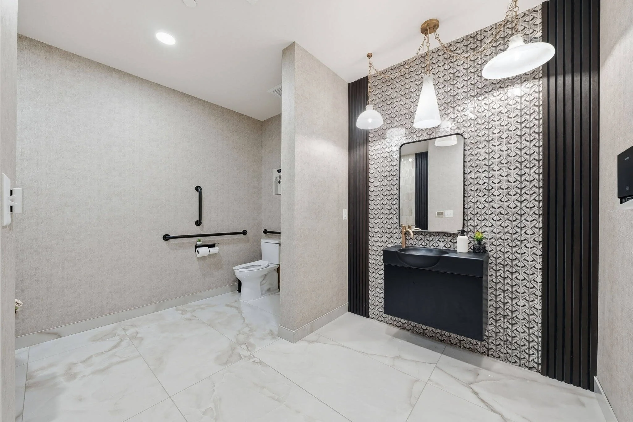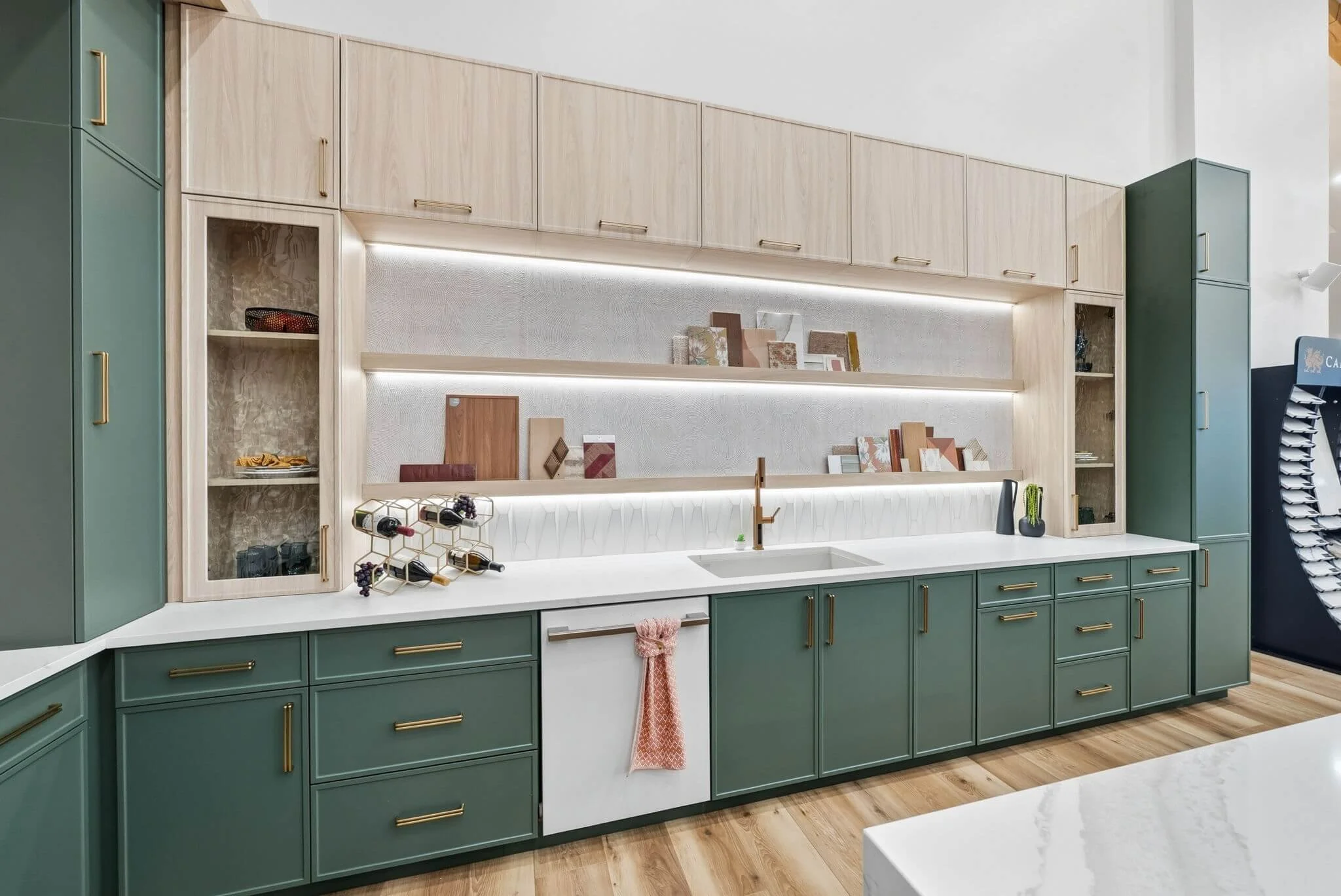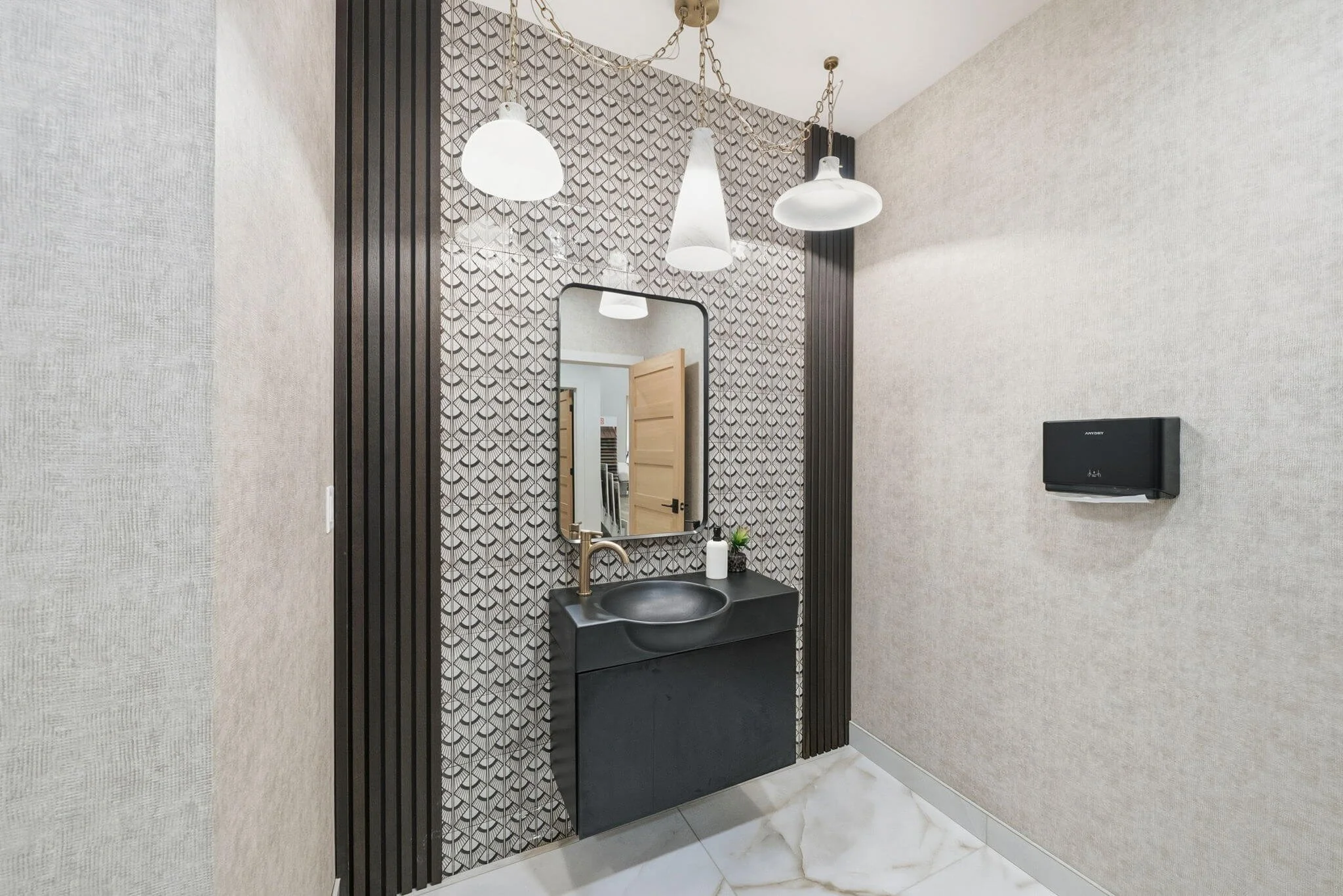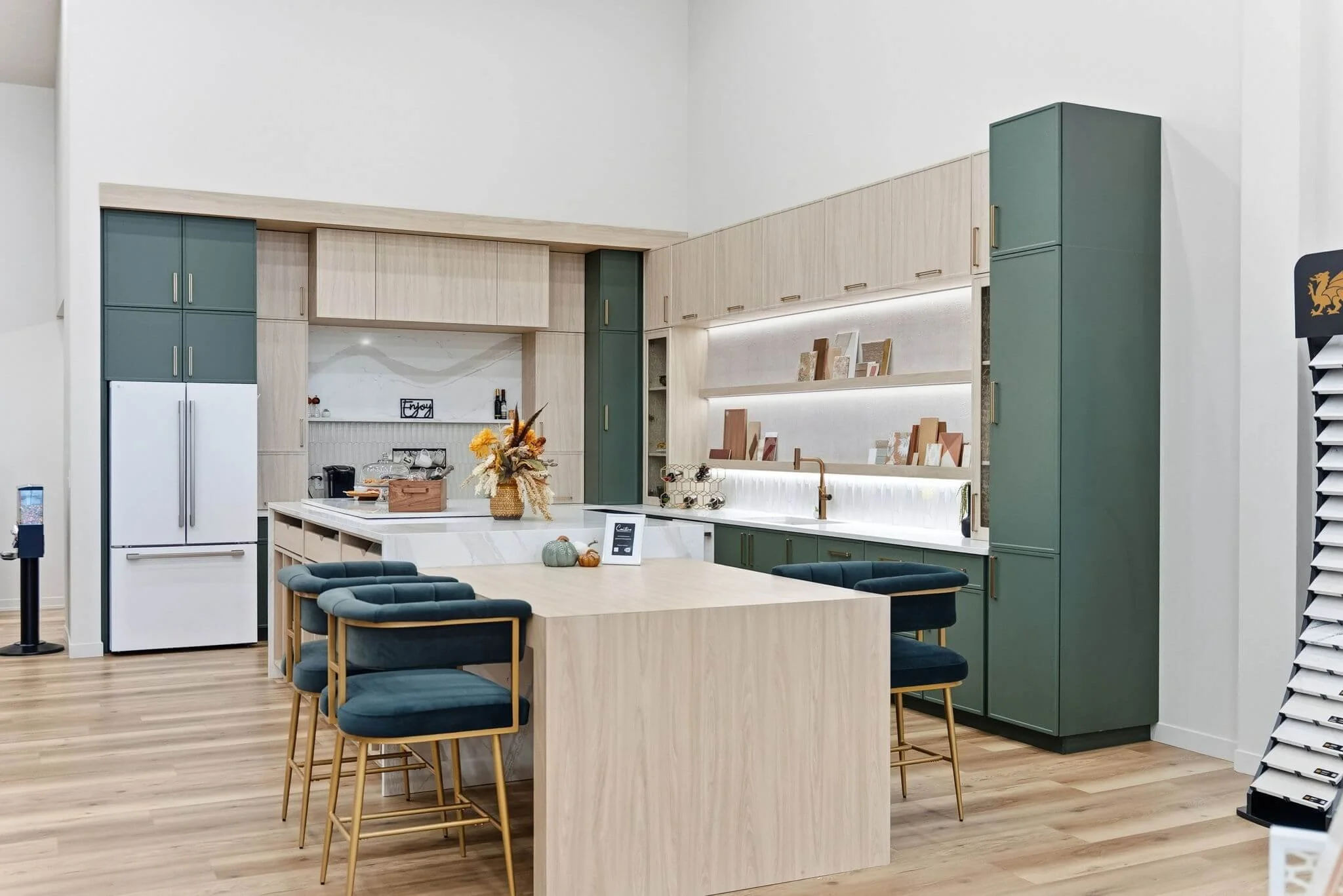 Large retail and design space that showcases a wide array of flooring products as well as cabinets, plumbing and lighting for residential and commercial projects. The building also has two separate office spaces for additional tenants and a large warehouse space.