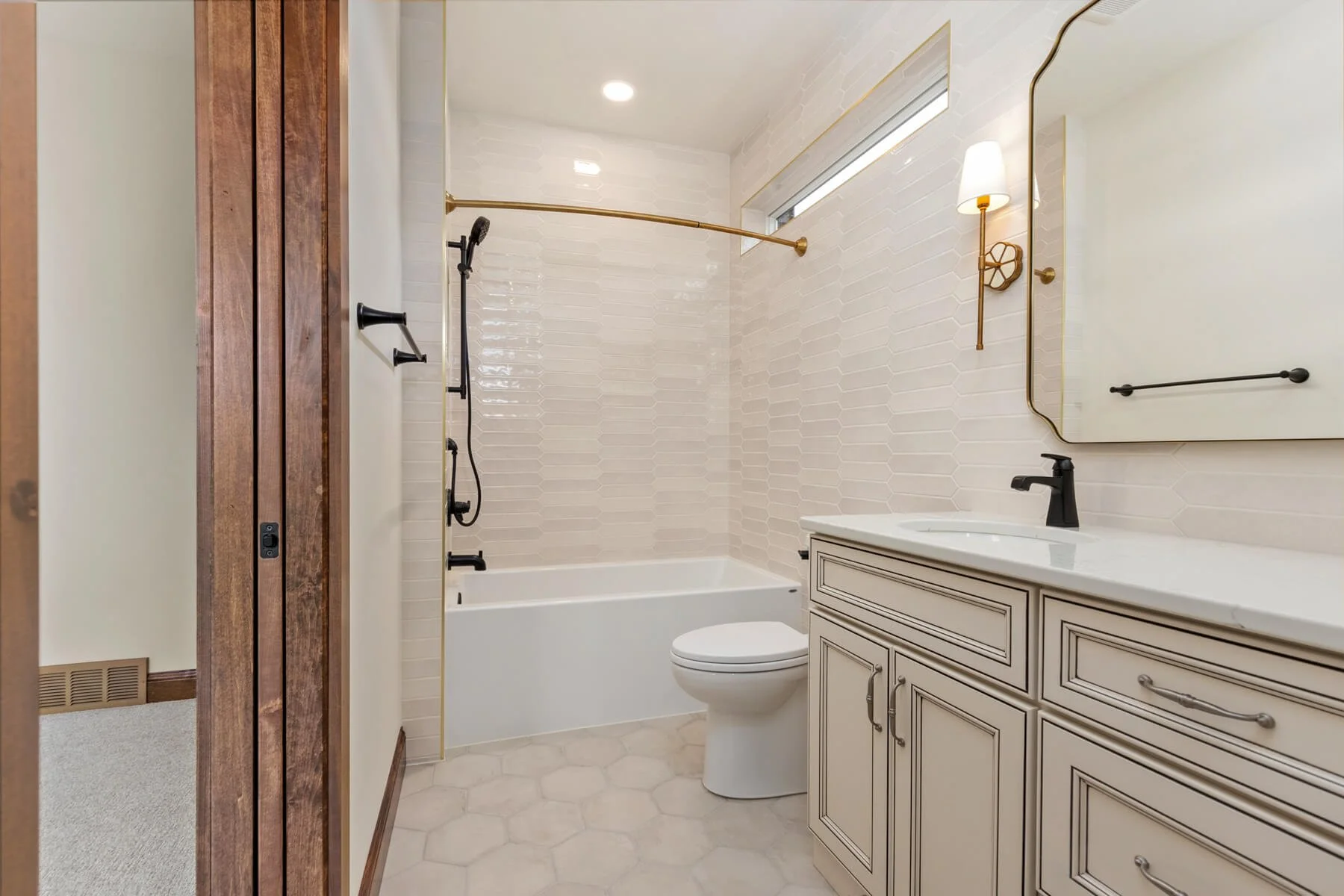 This modern walk out ranch overlooks the prairie in the new Sanctuary development with a full walkout in the rear yard. On the main level, the open floor plan kitchen, living an dining areas have 10’ ceilings and vaulted ceiling in the great room and entry. There is access to a large deck both off the dining room and the master bedroom. The master suite has a large walk in closet and the master bath features double sinks, a large curb-less shower and a freestanding tub. The daughter’s bedroom has a private bathroom and a custom built in window seat. The lower level features a large living room, wet bar and a golf simulator room.